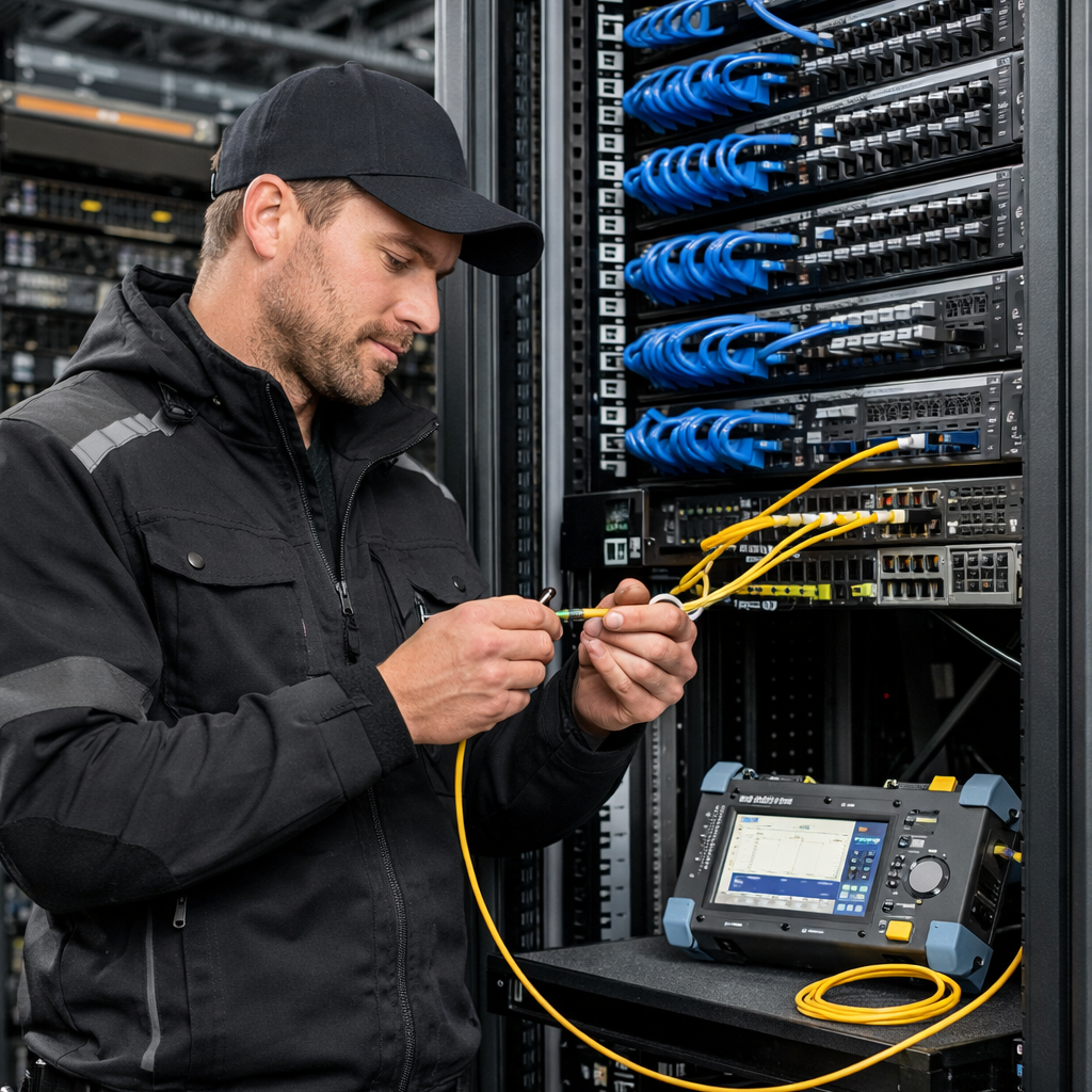 Ob Etagenumbau, Standorterweiterung oder Neubau: Wir realisieren die komplette Infrastruktur von den Kabeltrassen bis zum fertigen Netzwerkschrank. Ein entscheidender Vorteil: Wir verfügen über kalibrierte Messgeräte für Kupfer- und Glasfaserstrecken – inklusive OTDR-Messungen. So erhalten Sie Messprotokolle und eine nachweisbare Qualität für Abnahme, Betrieb und spätere Fehlersuche.